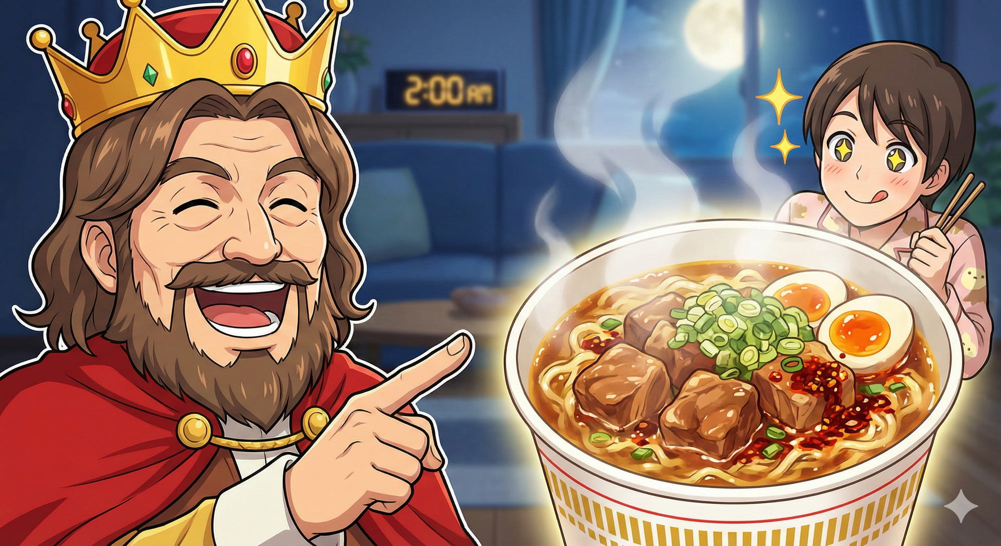 どうじゃったかな?深夜の胃袋を刺激する、魅惑のカップ麺たちは!どれもこれも、一口食べれば日頃のストレスも吹き飛ぶようなパワーを持っておるぞ。
