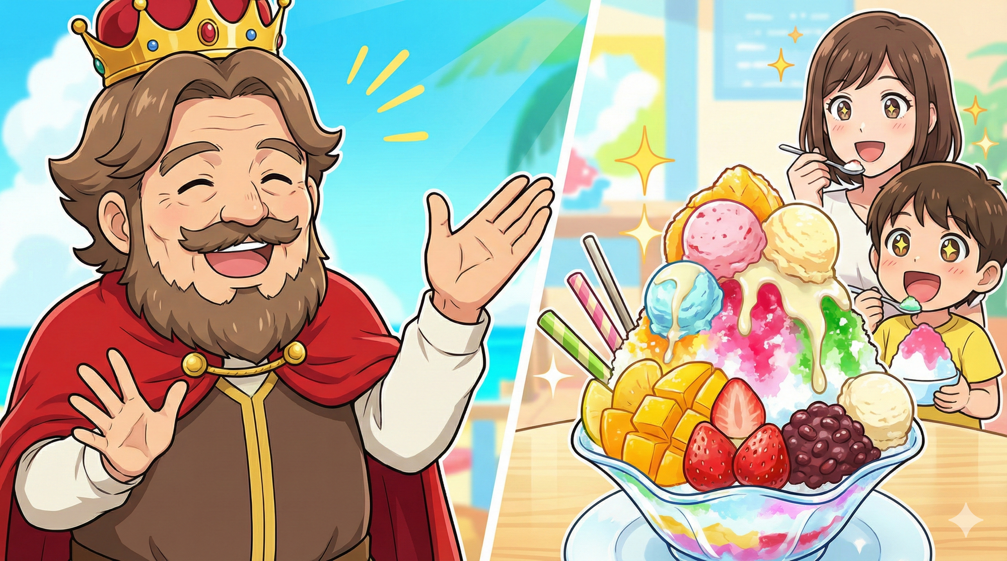 いかがおったかのう?いつものかき氷も、スーパーで買える身近な材料をちょい足しするだけで、こんなに豪華で美味しく進化するのじゃ!ぜひ今年の夏は、色々なアレンジを試して、お主だけのお気に入りかき氷を見つけておくれ。家族や友達とワイワイ言いながら作るのも楽しいぞい!